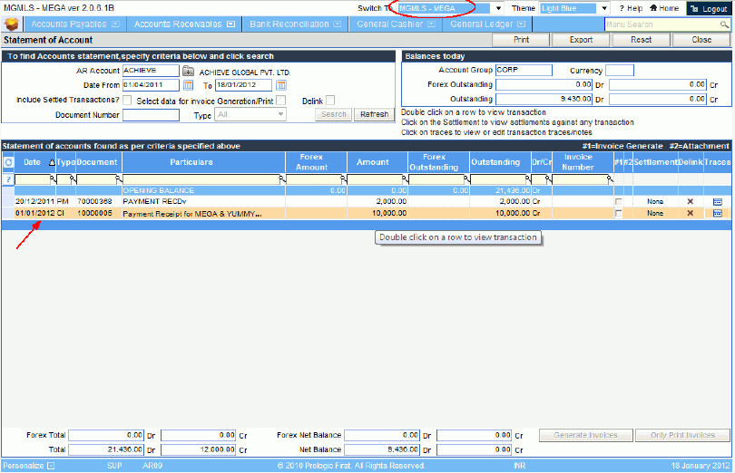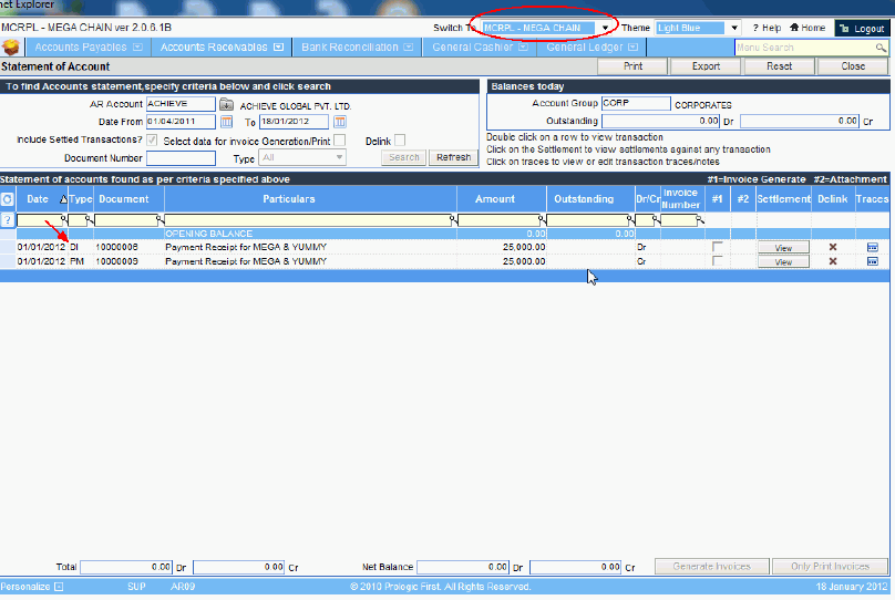 At the Head office : The Statement of Account of the debtor, will display a debit transaction linked to the Payment recorded.