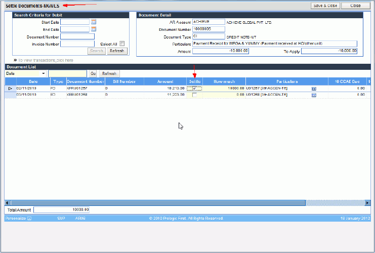 * Alternately you can choose to settle the transactions at the Unit later, using the screen of Settle Documents.
